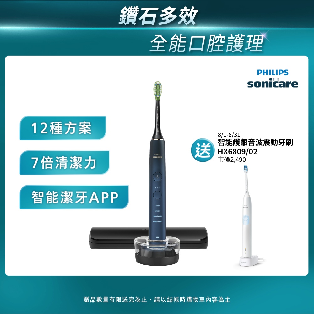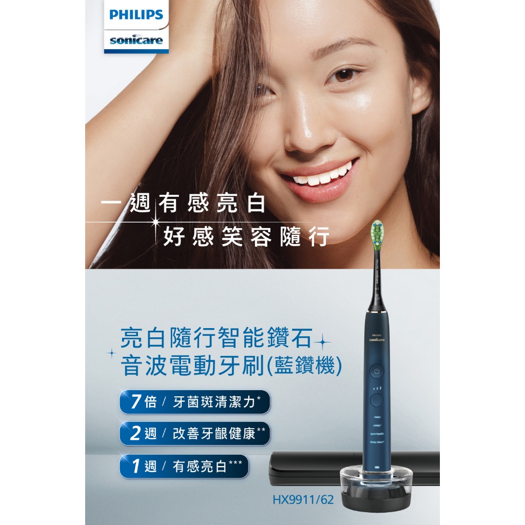 【PHILIPS 飛利浦】 官方直營 Sonicare亮白隨行智能鑽石音波震動/電動牙刷HX9911/62 (藍鑽)活動價Oral CarePhilips 飛利浦口腔保健旗艦館