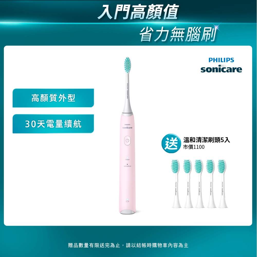 PHILIPS 飛利浦 官方直營 輕巧軟毛音波震動/電動牙刷-柔霧粉HX2421/04+溫和清潔刷頭5入HX2421/04+刷頭5入Oral CarePhilips 飛利浦口腔保健旗艦館