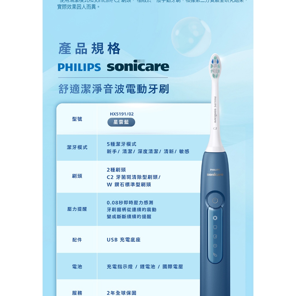 【PHILIPS 飛利浦】官方直營 Sonicare舒適潔淨音波震動/電動牙刷HX5191/02 (藍)活動價Oral CarePhilips 飛利浦口腔保健旗艦館