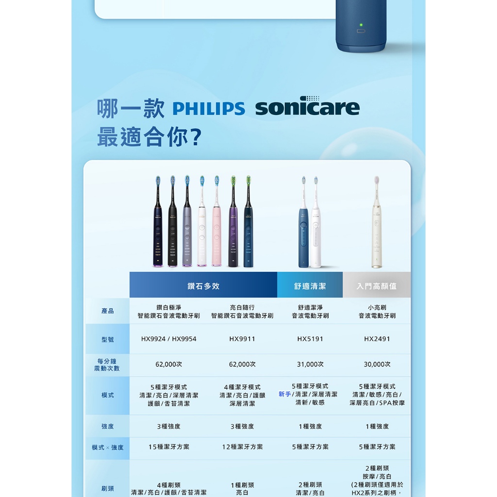 【PHILIPS 飛利浦】 官方直營 Sonicare亮白隨行智能鑽石音波震動/電動牙刷HX9911/62 (藍鑽)