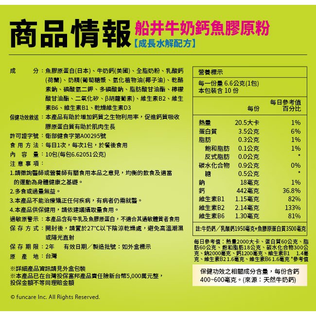 【funcare 船井生醫】牛奶鈣魚膠原粉(10包/盒)x3盒/6盒/9盒組3盒組|6盒組|9盒組Well BeingSNQ健康優購網