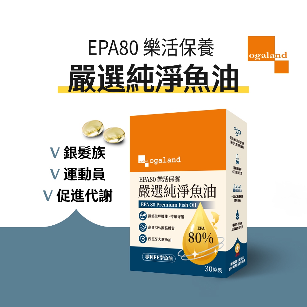 ogaland® EPA80樂活保養 嚴選純淨魚油 30粒 EPA80 Omega-3 調整體質 銀髮族 運動員效期 2028/6/18Well Beingogaland日本生活選品