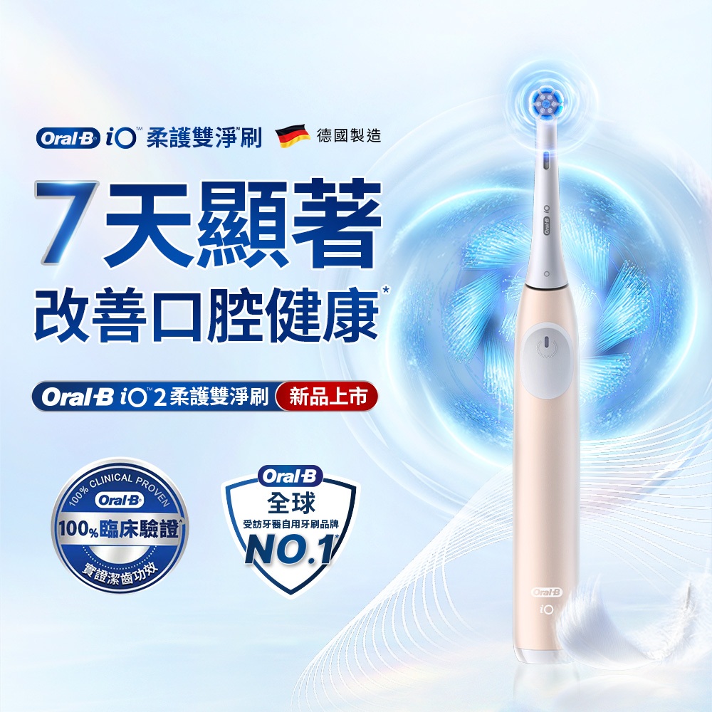德國百靈Oral-B iO2電動牙刷 溫和清潔護牙齦 適用敏感牙齒 (玫瑰粉/霧黑) 新品上市玫瑰粉|霧黑|特惠-霧黑+贈iO清潔刷頭2入|特惠-玫瑰粉+贈iO清潔刷頭2入Oral CareOral-B歐樂B|恆隆行官方旗艦館