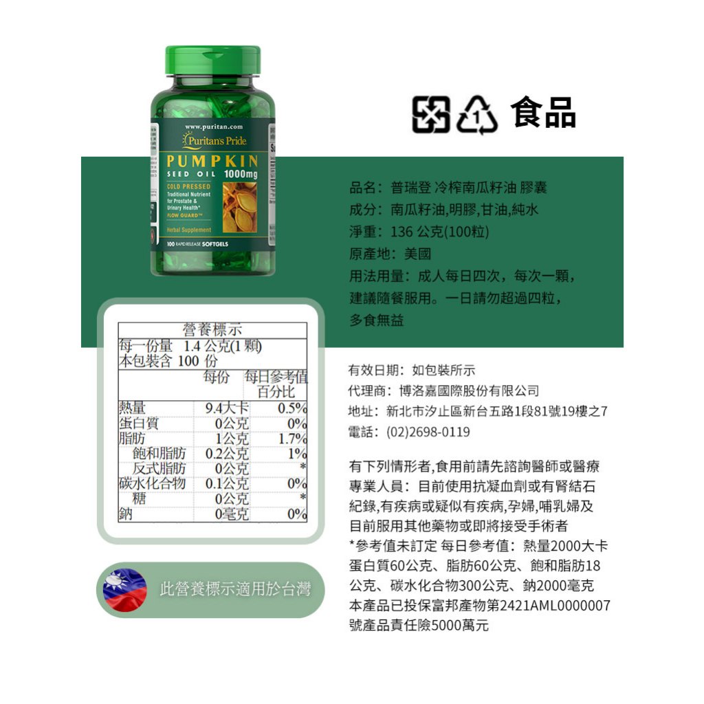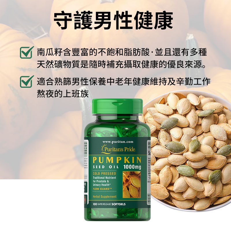 【Puritan’s Pride 普瑞登】冷榨南瓜籽油 膠囊 (100粒/瓶) 台灣總代理【Puritan’s Pride 普瑞登】冷榨南瓜籽油 膠囊 (100粒/瓶) 台灣總代理Weight ManagementPuritan’s Pride 普瑞登 台灣總代理