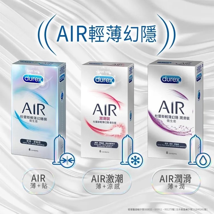 保密發貨 杜蕾斯 Durex AIR 輕薄幻隱 潤滑裝 保險套 衛生套 阿性情趣 避孕套3入|8入Condomsr-Xing 阿性情趣官方線上商城