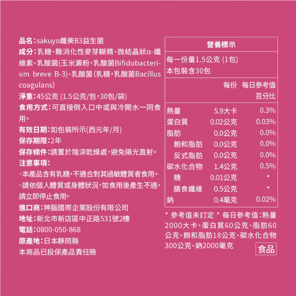 sakuyo 纖美B3益生菌盒裝版(30條/盒)30條/盒 贈體驗包Well Beingsakuyo 官方旗艦館