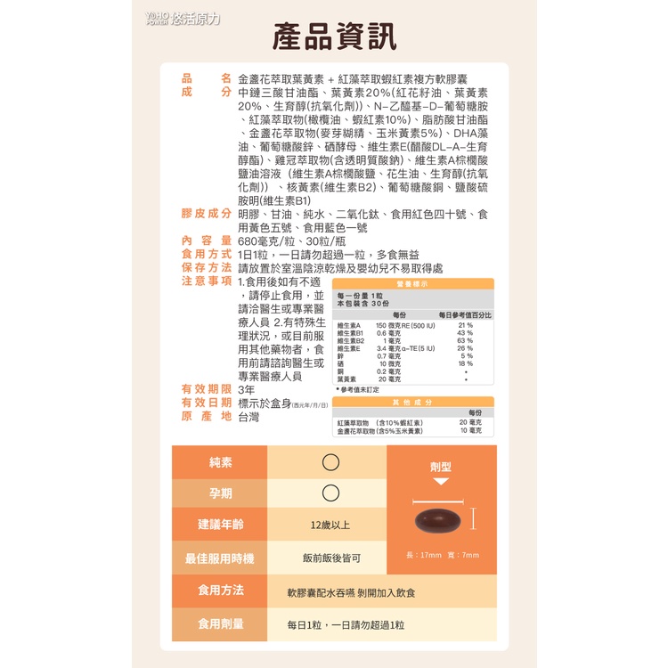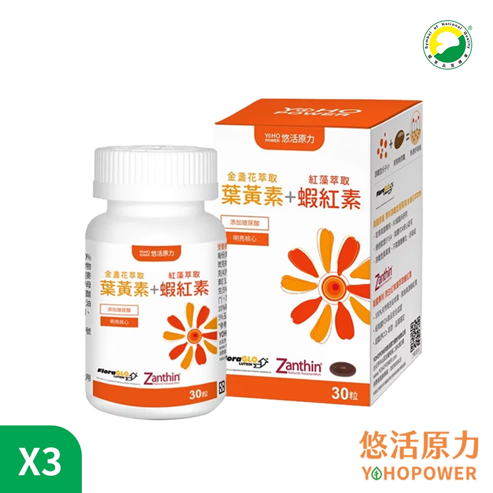 悠活原力金盞花萃取葉黃素+紅藻萃取蝦紅素複方軟膠囊 3盒組(30粒/盒)+贈10粒裝X3瓶 悠活葉黃素原廠供貨健康優購網3盒(無贈品)|3盒+10粒/瓶*3瓶 超值共120粒Well BeingSNQ健康優購網