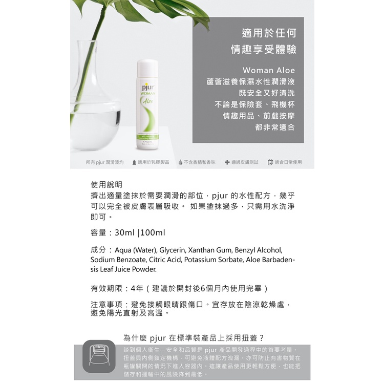 德國pjur 碧宜潤 Woman Aloe 蘆薈滋養保濕水性潤滑液-100ml德國pjur 碧宜潤 Woman Aloe 蘆薈滋養保濕水性潤滑液-100mlLubricantsSISTALK小怪獸 | 台灣總代理-永準官方旗艦店