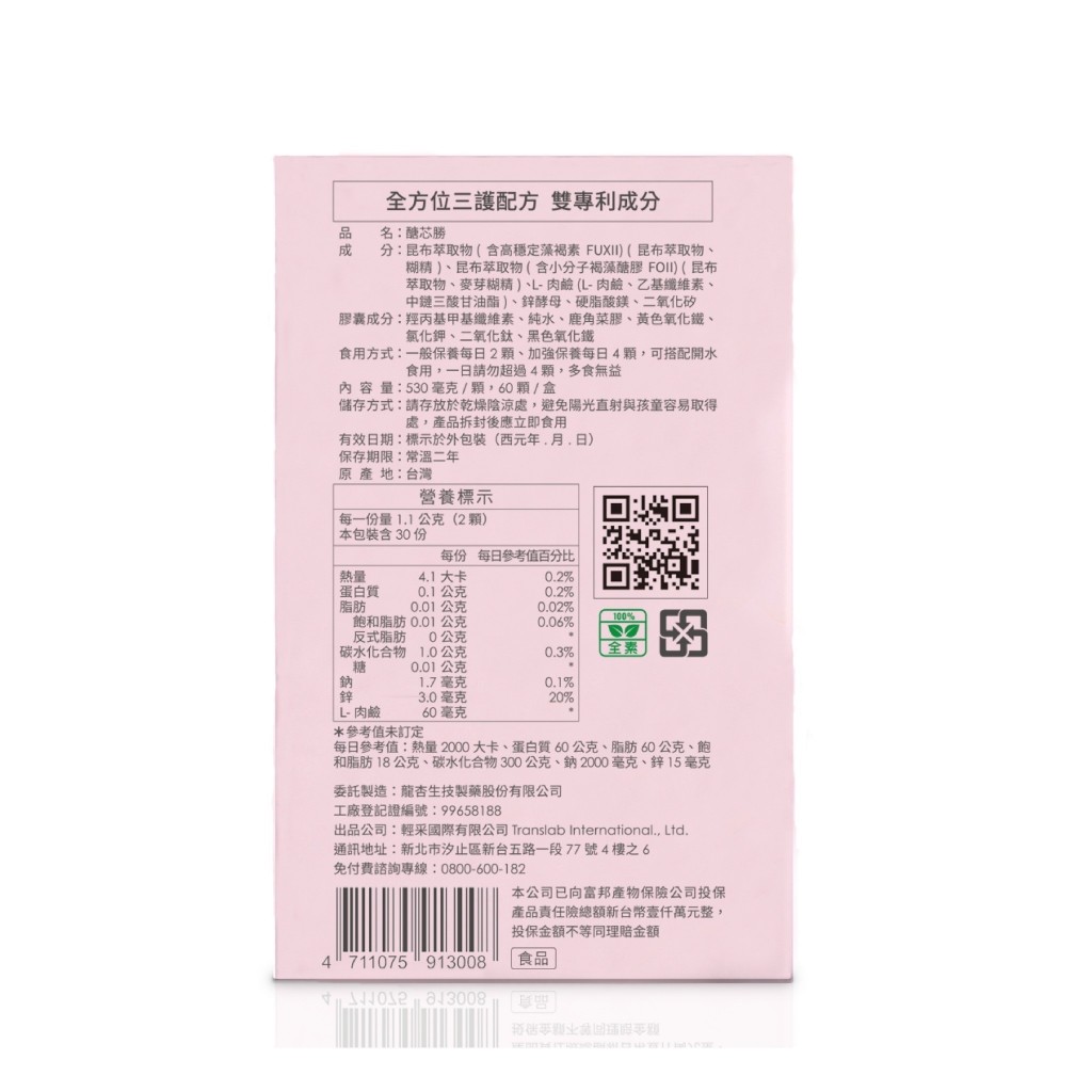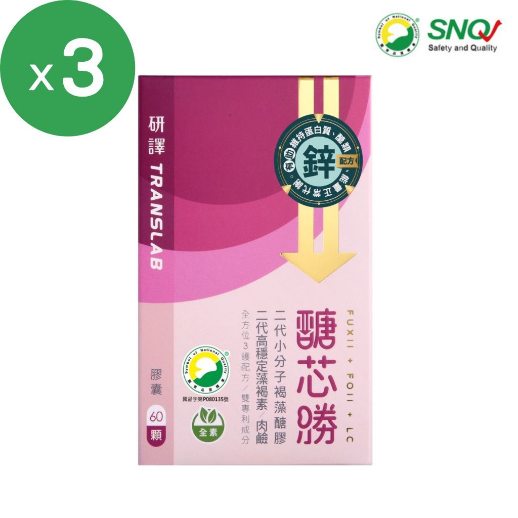 【研譯】醣芯勝膠囊單盒/3盒組(60顆/盒) 含藻褐素 小分子褐藻醣膠 肉鹼 鋅酵母 研褐原廠供貨 SNQ健康優購網單盒(60顆/盒)|3盒組(60顆/盒X3盒)Well BeingSNQ健康優購網