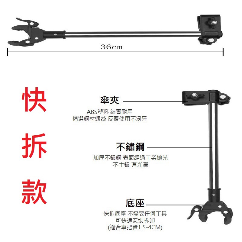 輪椅雨傘支架 雨傘支架 推車雨傘支架簡約底座可調節|可伸縮款|快拆款Injury & Disability SupportT.K.胎王商城旗艦店
