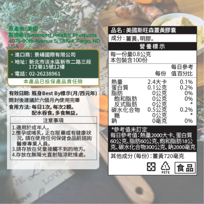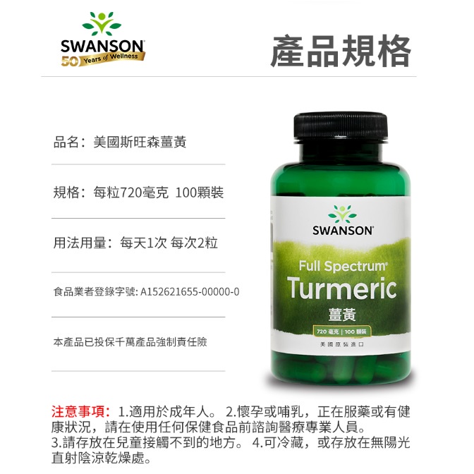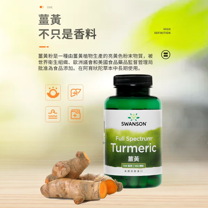 【SWANSON 美國斯旺森】 薑黃 720mg 100顆 Turmeric 薑黃素 美國 原裝 進口現貨|全新現貨Well BeingSWANSON 美國斯旺森 原廠授權台灣獨家經銷
