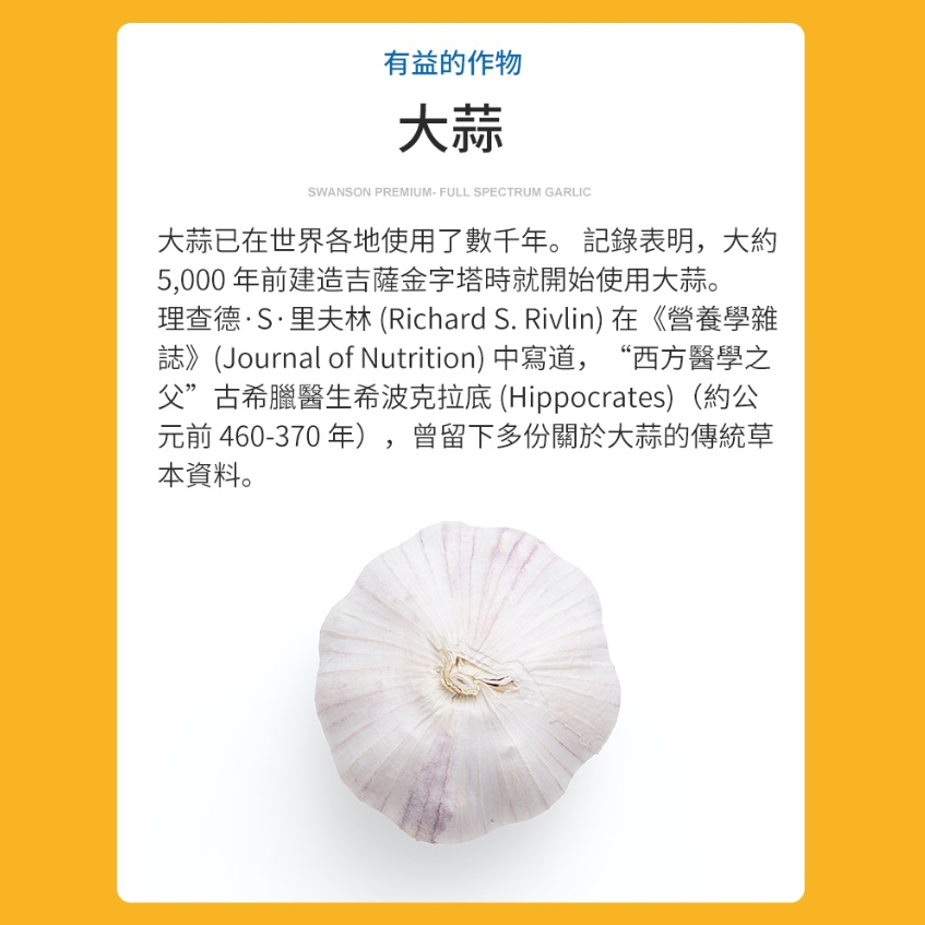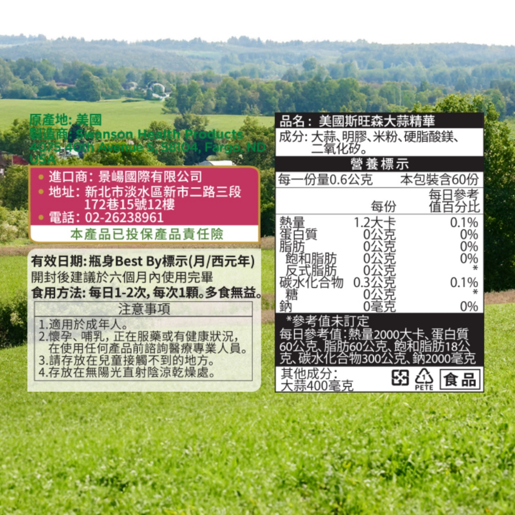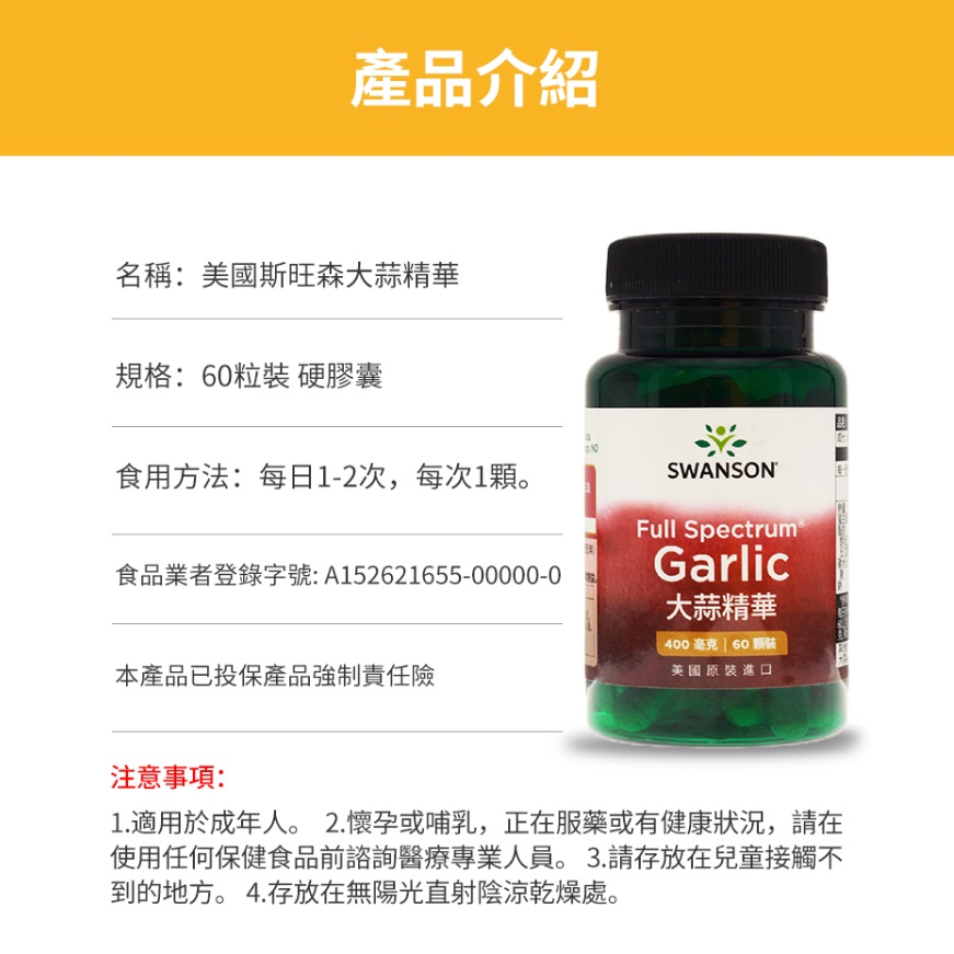 【SWANSON 美國斯旺森】 大蒜精華 400毫克 60粒裝 硬膠囊 增強體力 健康維持全新現貨|現貨Well BeingSWANSON 美國斯旺森 原廠授權台灣獨家經銷