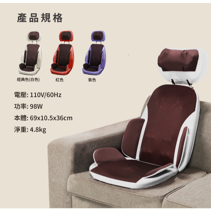 【MRF健身大師|台灣現貨】 6D溫感揉搥開背按摩墊|按摩椅墊|行動按摩椅|120個按摩頭經典色|紅色|紫色Massage & Therapy DevicesMRF健身大師官方旗艦店