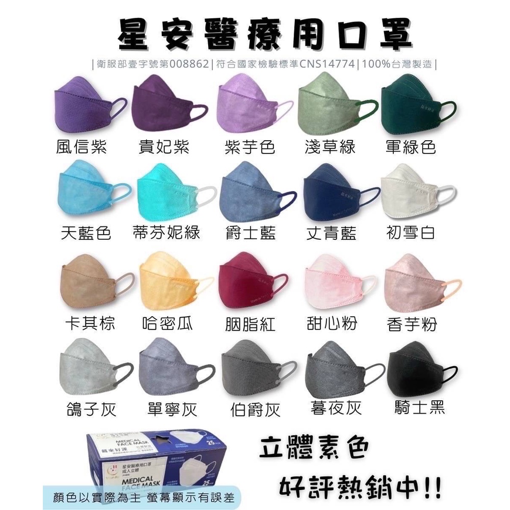 星安 令和韓式立體醫療口罩 一盒25入 醫療口罩 醫用口罩 KF94 魚嘴 魚型 立體口罩星安 單色奶茶/25入 現貨|星安立體冬季五色成人款/25入 現貨|星安立體千鳥五色成人款/25入 現貨|星安立體星動時光成人款/25入 現貨|(特價99)星安立體復古年代/25入|星安 單色卡其棕/25入 現貨|星安 單色風信紫/25入 現貨|星安 單色軍綠/25入 現貨|星安 單色天藍色/25入 現貨|星安 單色鴿子灰/25入 現貨Medical Gloves & MasksMUSI 口罩&包包帽子 專賣