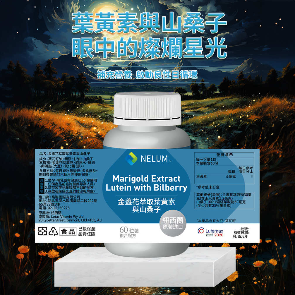 【Nelum 奈蓮營養】游離型葉黃素 玉米黃素 與 山桑子 高濃縮 60顆 軟膠囊 紐西蘭現貨Well BeingNelum Nutrition 奈蓮營養 台灣經銷
