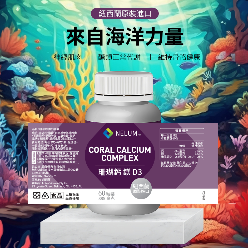 【Nelum 奈蓮營養】鈣鎂D3 260+125毫克 60顆裝 硬膠囊 珊瑚鈣 海鹽鎂 紐西蘭現貨|全新現貨Well BeingNelum Nutrition 奈蓮營養 台灣經銷
