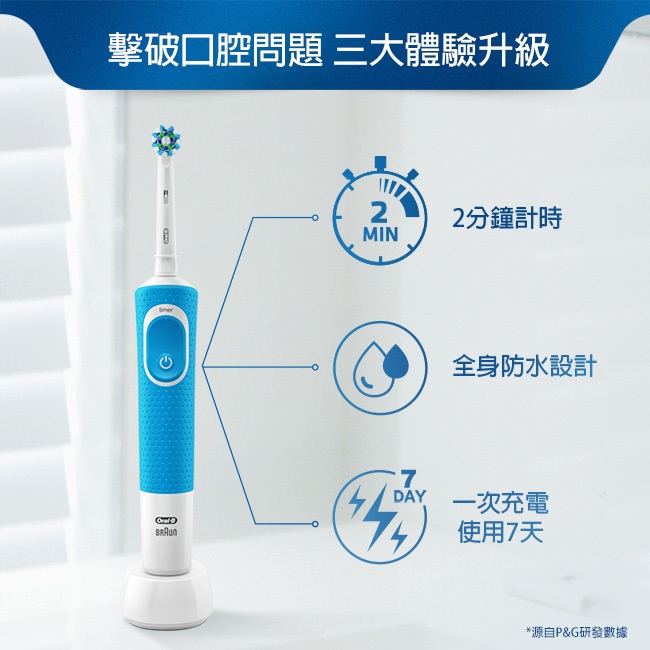 德國百靈Oral-B 活力亮潔電動牙刷D100 清新藍1入|特惠-1入+EB20刷頭4入(一年份)Oral CareOral-B歐樂B|恆隆行官方旗艦館