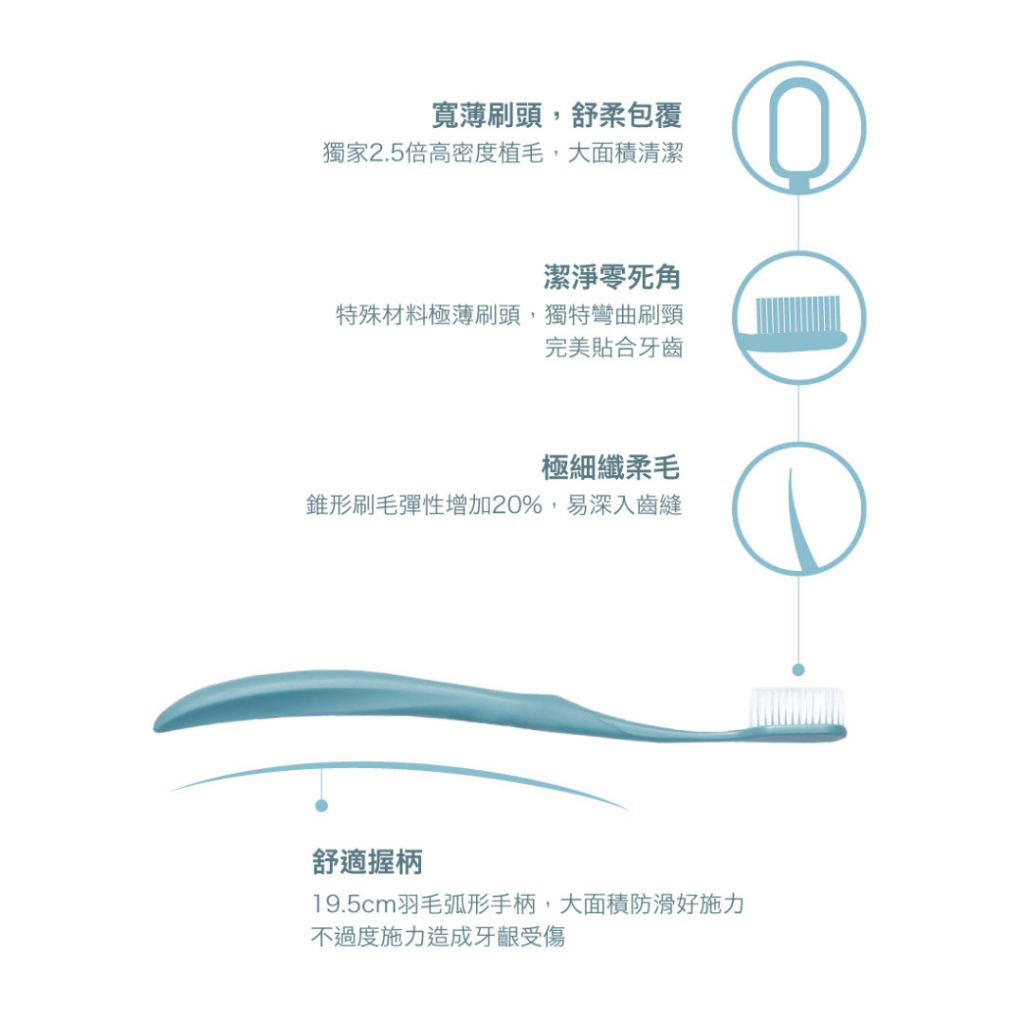 【歐可麗】寬幅全方位牙刷 (1支/盒)|獨家2.5倍高密度植毛 19.5cm羽毛弧形手柄 深支牙縫 不傷牙齦寬-朝霧藍|寬-迷霧綠|寬-蒼青藍|買一送一(顏色隨機出貨)Oral CareOral Clean 歐可麗
