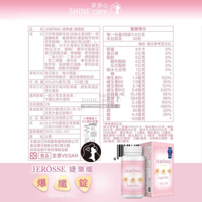 婕樂纖JEROSSE 爆纖錠 (120錠/瓶)【享安心】新陳代謝 女性營養品 保健食品 生理 好氣色 孕婦 素食【單瓶】|【2瓶】|【自搭優惠價】任選2個婕樂纖產品請選此|【自搭VIP價】。婕樂纖混搭4000選此|【5瓶】Well BeingSHINEcare 享安心旗艦店