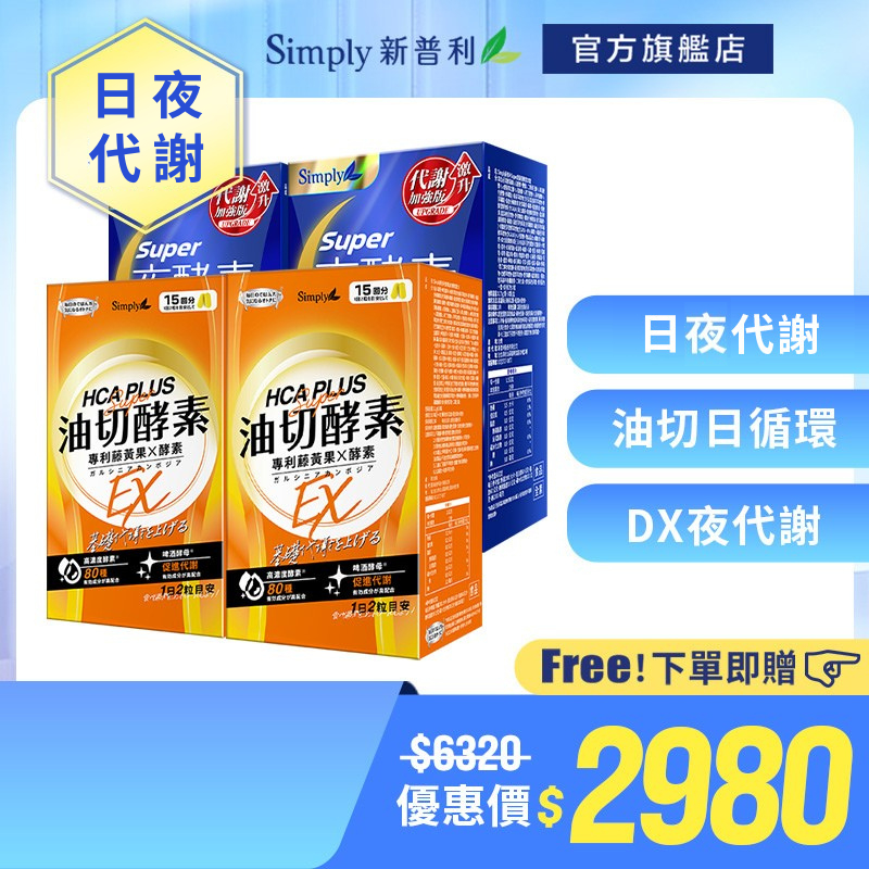 【Simply新普利】油切酵素錠EX(2盒)+超級夜酵素DX 30錠/盒(2盒)油切*2盒+夜酵素DX*2盒Weight ManagementSimply新普利酵素官方旗艦店