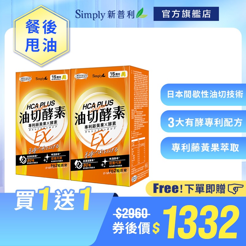 【Simply新普利】油切酵素錠EX(30錠/盒)(x2盒)【買一送一】(藤黃果 仙人掌 酵素 打卡)買1盒送1盒Weight ManagementSimply新普利酵素官方旗艦店