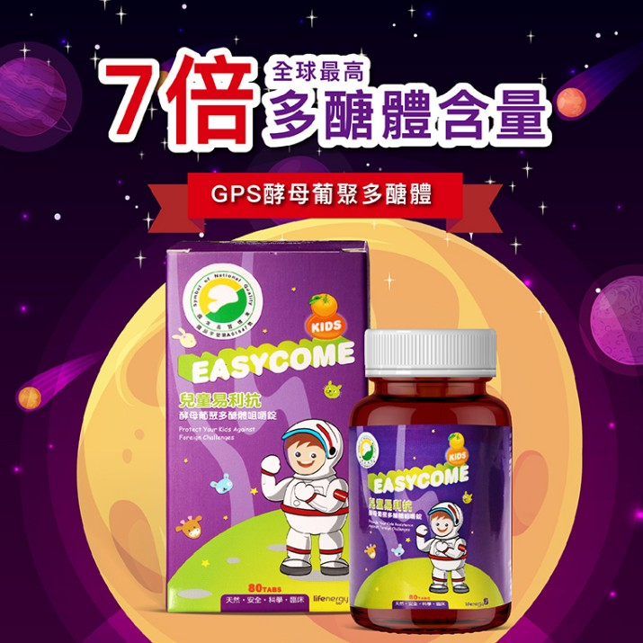 【生機生技】兒童易利抗咀嚼錠(橘子口味-80顆/瓶) | 酵母葡聚多醣體咀嚼錠1盒Well BeingSNQ健康優購網