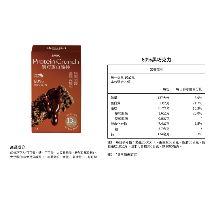 Spark Crunch 濃巧蛋白脆棒8入盒裝- 60%黑巧克力 ⎜蛋白棒 高蛋白餅乾 高蛋白零食 乳清蛋白 大豆蛋白Spark Crunch 濃巧蛋白脆棒8入盒裝- 60%黑巧克力 ⎜蛋白棒 高蛋白餅乾 高蛋白零食 乳清蛋白 大豆蛋白FitnessSpark Protein