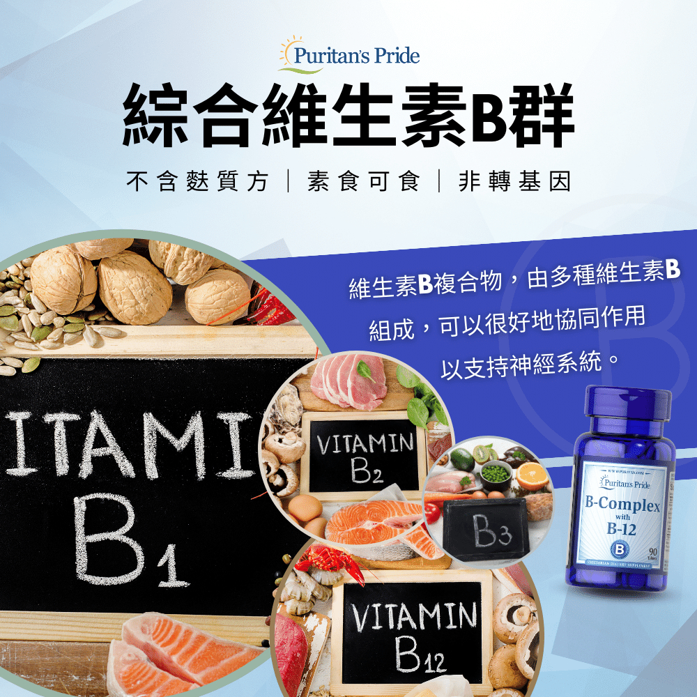 【Puritan’s Pride 普瑞登】維他命 B群 + B12 補充錠劑 90粒/瓶/台灣總代理