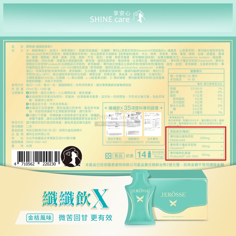 婕樂纖JEROSSE 纖纖全系列 推薦優惠組合 【享安心官方旗艦店】✧爆纖錠x5盒|♥推薦組合1 – $4870|♥推薦組合2 – $4040|♥推薦組合3 – $4040|♥推薦組合4- $4580|♥推薦組合5 – $4310|✧纖飄錠x3盒|✧纖酵宿x5盒|✧纖纖飲x3盒|♥推薦組合8 – $3880|♥推薦組合6 – $3680|♥推薦組合7 – $6690|♥推薦組合9 – $5120|♥推薦組合10 – $4130|♥推薦組合11 – $3970|✧纖酵宿x2盒|♥推薦組合12 – $4060|♥推薦組合13 – $4150|♥推薦組合14 – $4150|♥推薦組合15 – $4220|♥推薦組合16 – $4130|♥推薦組合17 – $4130|★優惠組合A – $1700|★優惠組合B – $1800|★優惠組合C – $2180|★優惠組合D – $2180|★優惠組合E – $1700|★優惠組合F – $1800|★優惠組合G – $1700|★優惠組合H – $2760|★優惠組合I – $2280|★優惠組合J – $2280Weight ManagementSHINEcare 享安心旗艦店