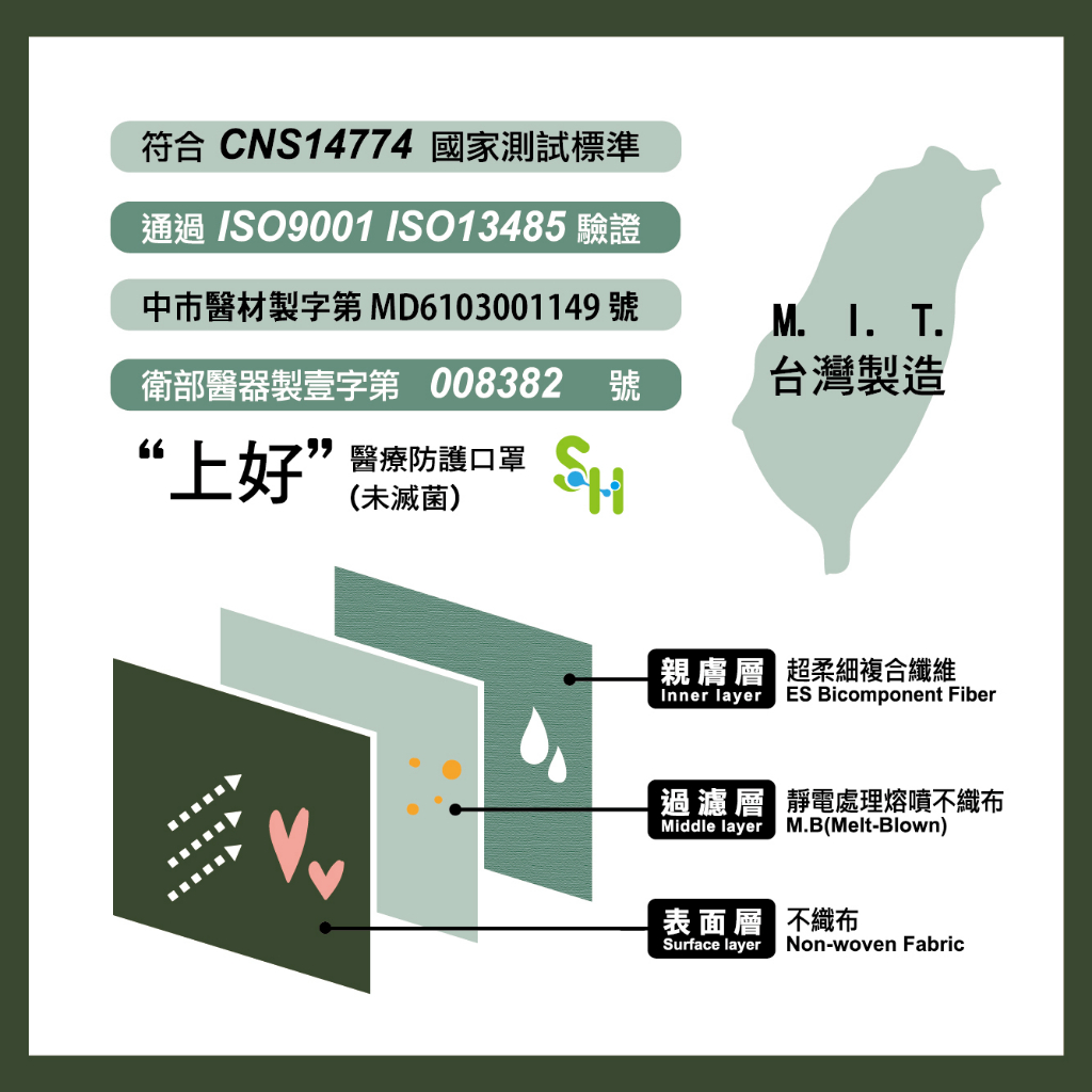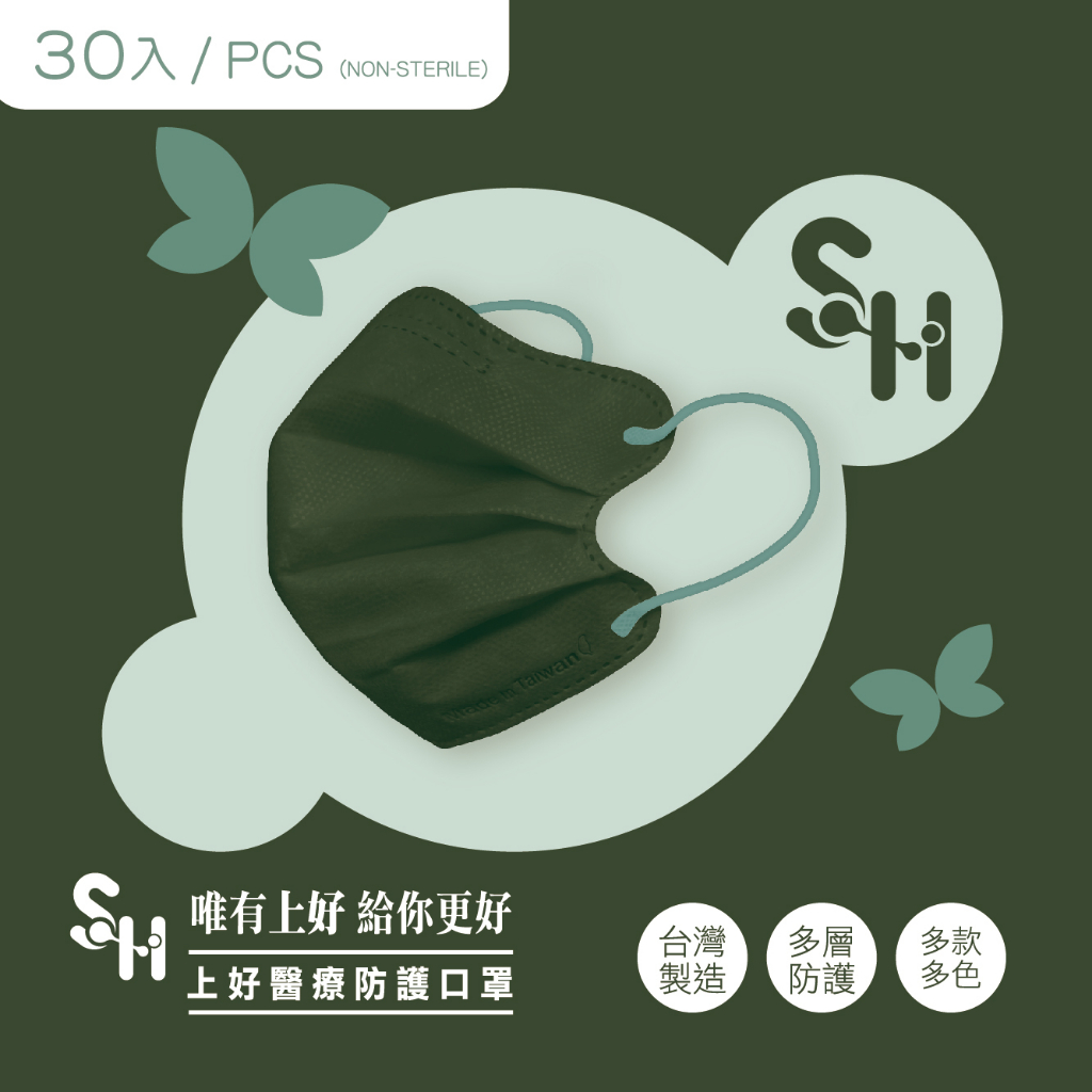 【上好生醫】成人|軍綠(蝶型)|30入裝 醫療防護口罩軍綠(蝶型) 30入Medical Gloves & MasksSH 上好生醫