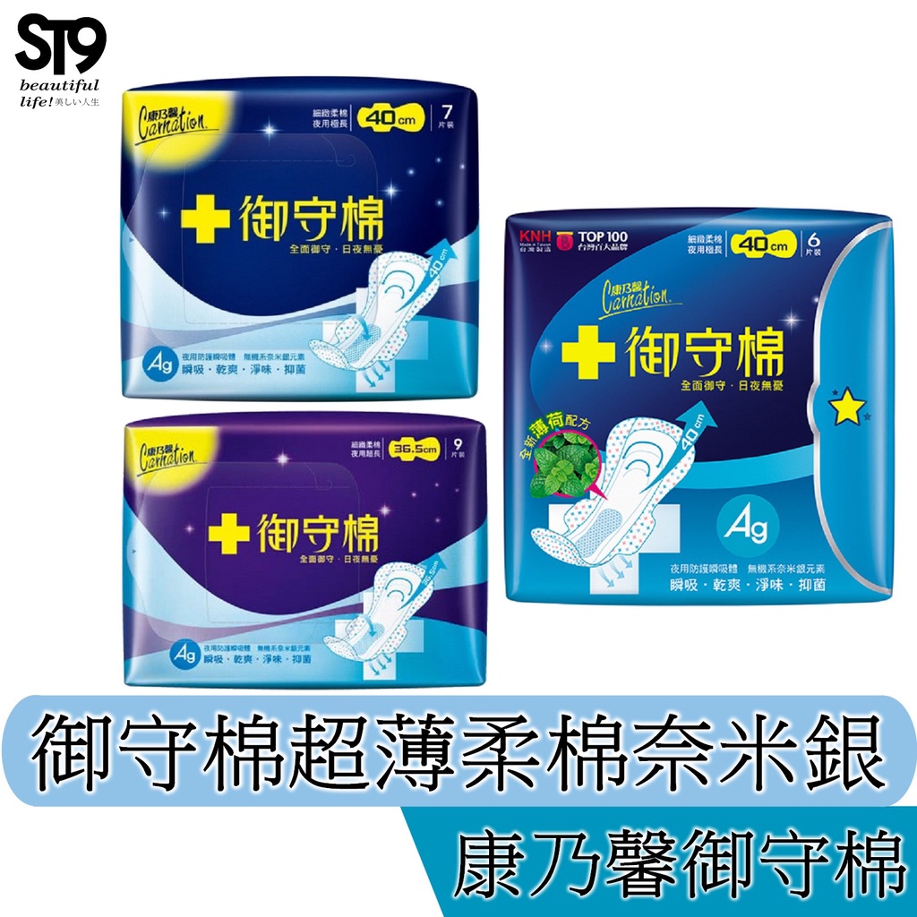 KNH 康乃馨 御守棉 衛生綿 40cm 夜用 超長 涼感 關鍵在抑菌 吸更乾爽 ST9夜用超長36.5CM9片|夜用極長40CM7片|夜用極長40CM6片【涼感】Feminine CareST9PLUS 品牌 零售 批發 團購