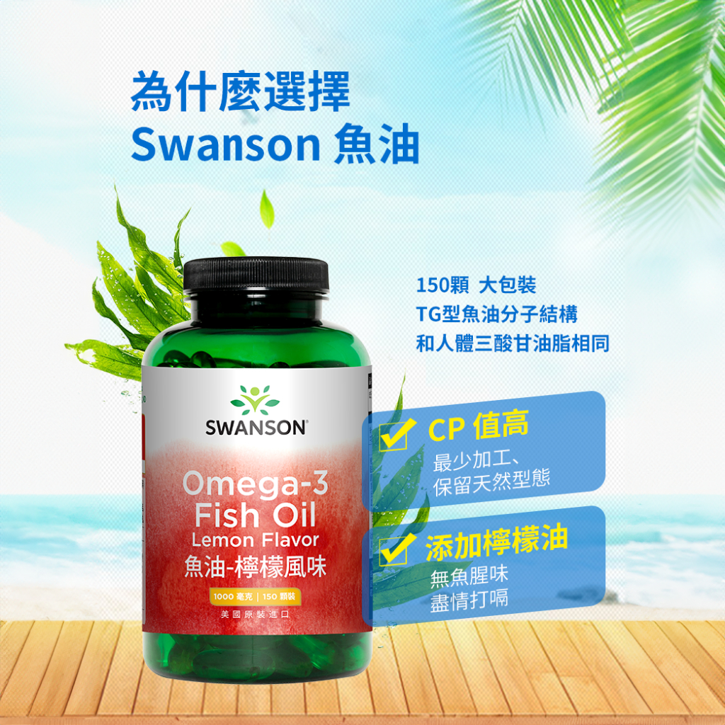 【SWANSON 美國斯旺森】 Omega-3 魚油 檸檬風味 1000毫克 150顆 美國 原裝 進口全新現貨|現貨Well BeingSWANSON 美國斯旺森 原廠授權台灣獨家經銷