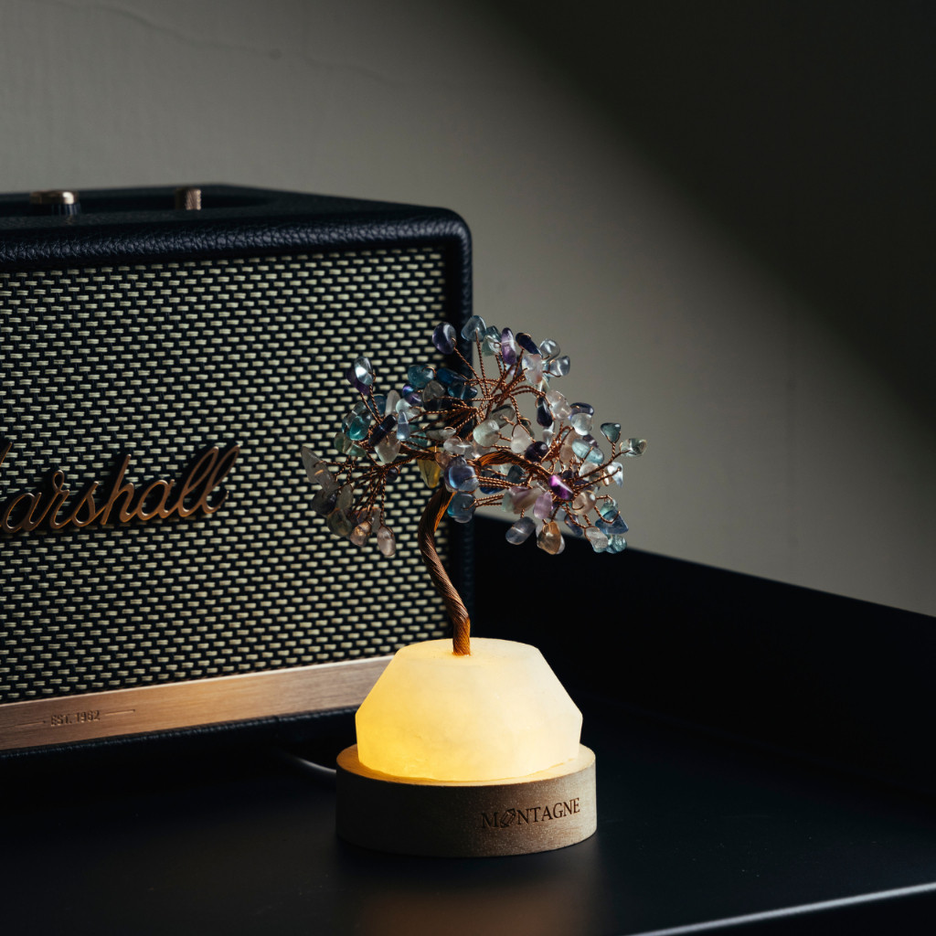 【Montagne】原礦水晶樹|Treasure Tree|白水晶。彩螢石|淨化。增強無夜燈|夜燈款Stones & MineralsMontagne 山造