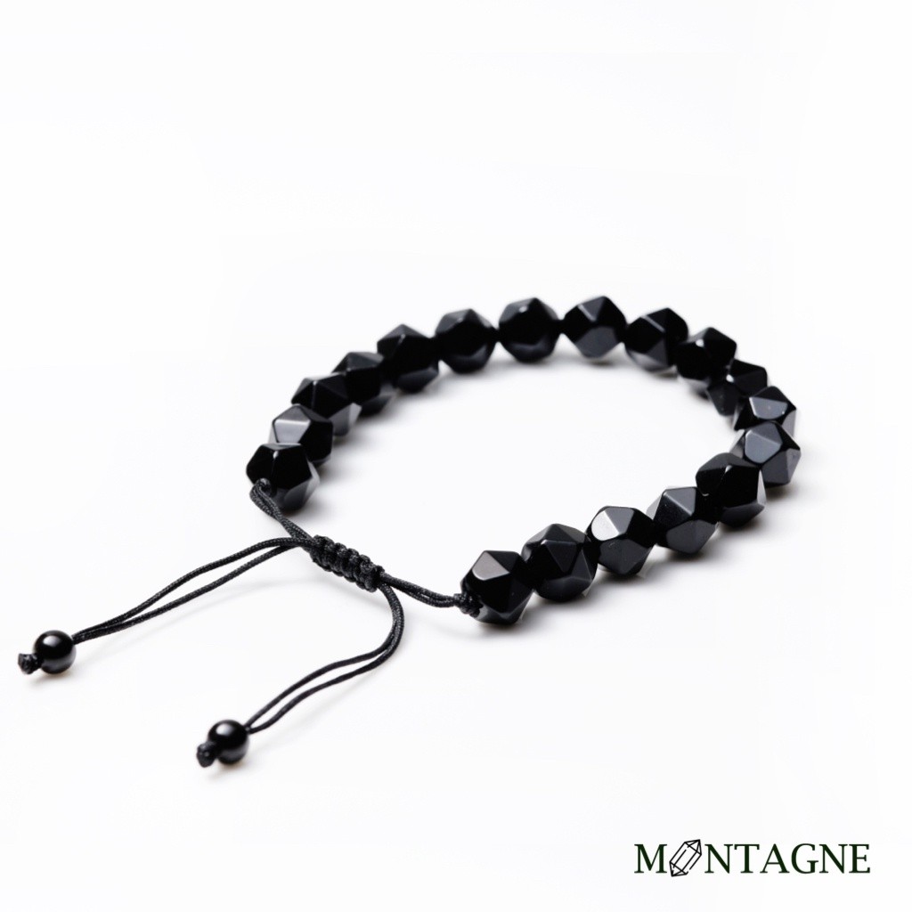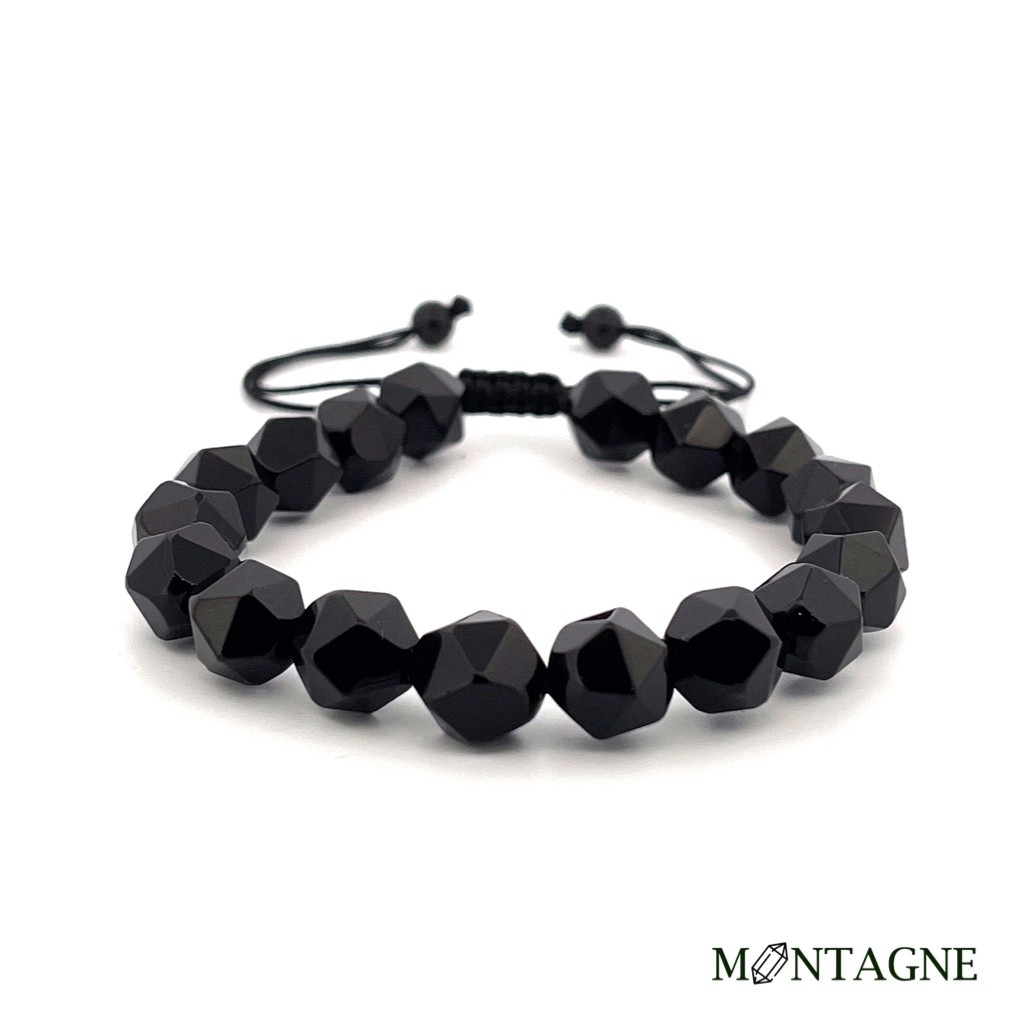 【Montagne】編織LOGO手鍊|黑曜石|切角10mm,手圍14.5cm~18cm適用|10mm,手圍16cm~19cm適用|12mm,手圍14.5cm~18cm適用|12mm,手圍16cm~19cm適用Stones & MineralsMontagne 山造