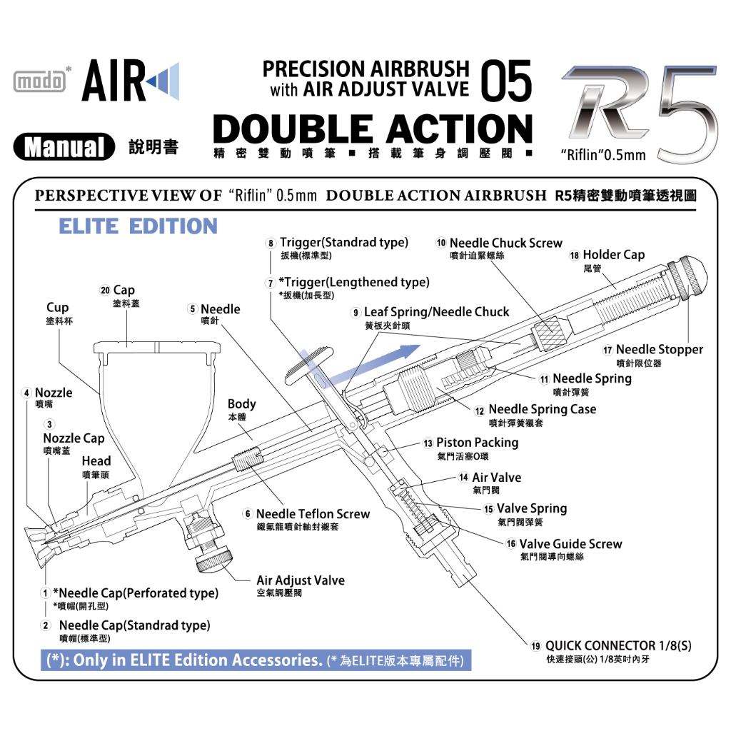 【modo摩多製造所】modoAIR R5 0.5mm 附調壓閥雙動式高階噴筆|官方賣場標準版|精裝版Mecha Models & Diecastmodo摩多製造所
