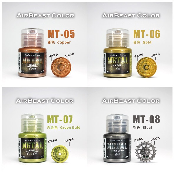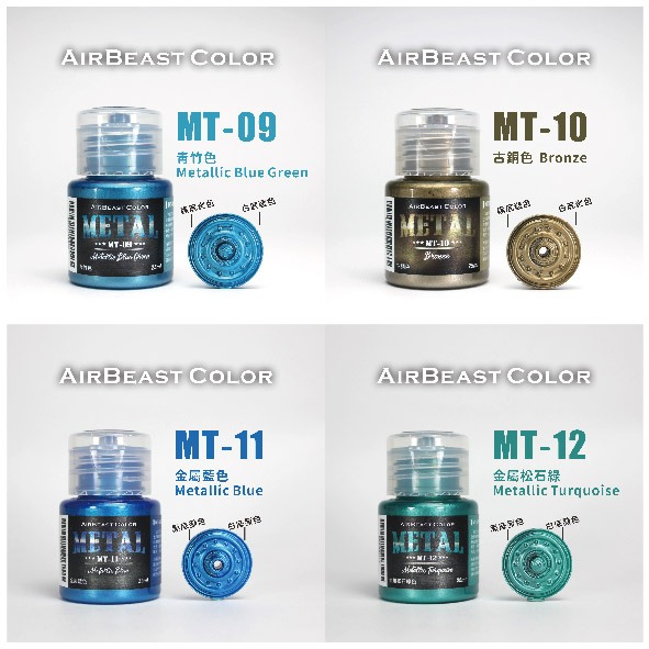 【AirBeast】 Color MT系列 /金屬漆/金屬色/水性漆/模型用/modo摩多製造所|官方賣場MT01-銀色|MT02-白鋁色|MT03-鋁色|MT04-槍鐵色|MT05-銅色|MT06-金色|MT07-青金色|MT08-鋼色|MT09-青竹色|MT10-古銅色|MT11-金屬藍|MT12-松石綠|MT13-金龜綠Mecha Models & Diecastmodo摩多製造所