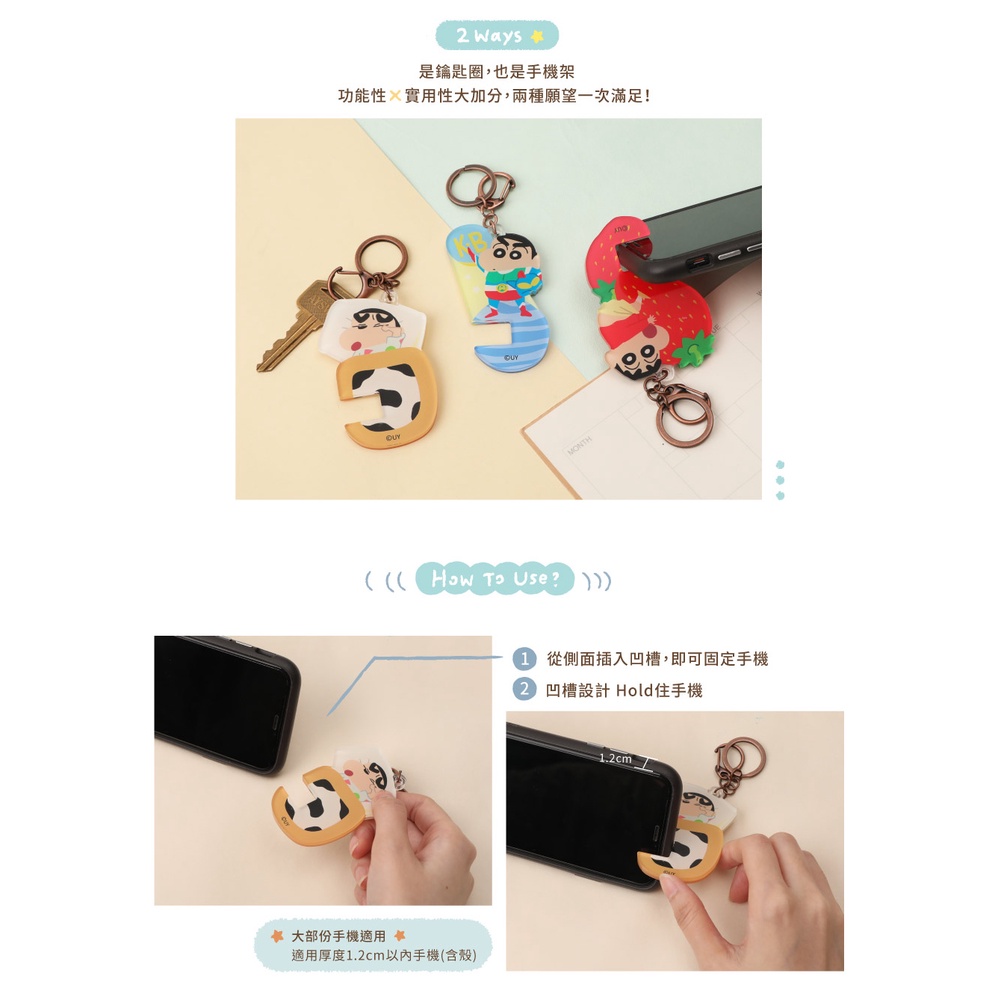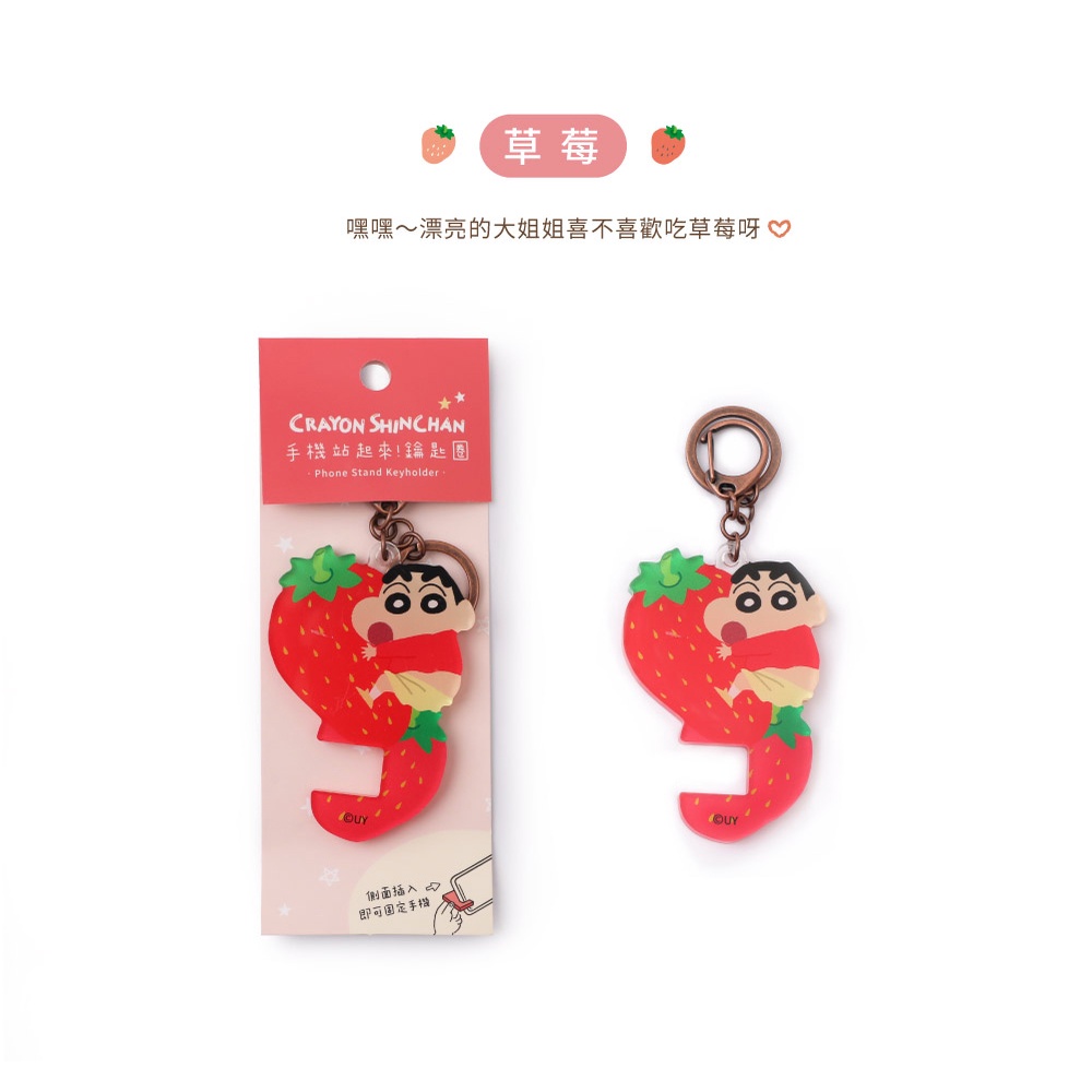 蠟筆小新手機站起來鑰匙圈-Norns Original Design 蠟筆小新 手機架 多功能壓克力鑰匙圈 吊飾手機支架乳牛被|草莓|動感KeychainsNorns