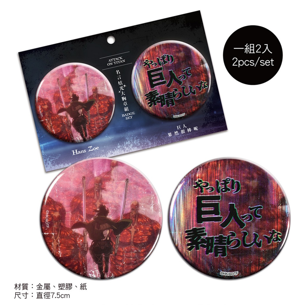 進擊的巨人 C款 語錄炫光大胸章組(2入) 漢吉進擊的巨人 C款 語錄炫光大胸章組(2入) 漢吉Anime & Manga CollectiblesMUSE木棉花