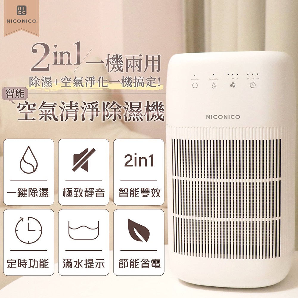【NICONICO】雙效空氣清淨除濕機 NI-DC1004 空氣清淨機 除濕機 二合一 專用高效能濾網雙效清淨除濕機-配件濾網【一顆】|雙效清淨除濕機-主機【一台】Air TreatmentNICONICO家電-官方賣場