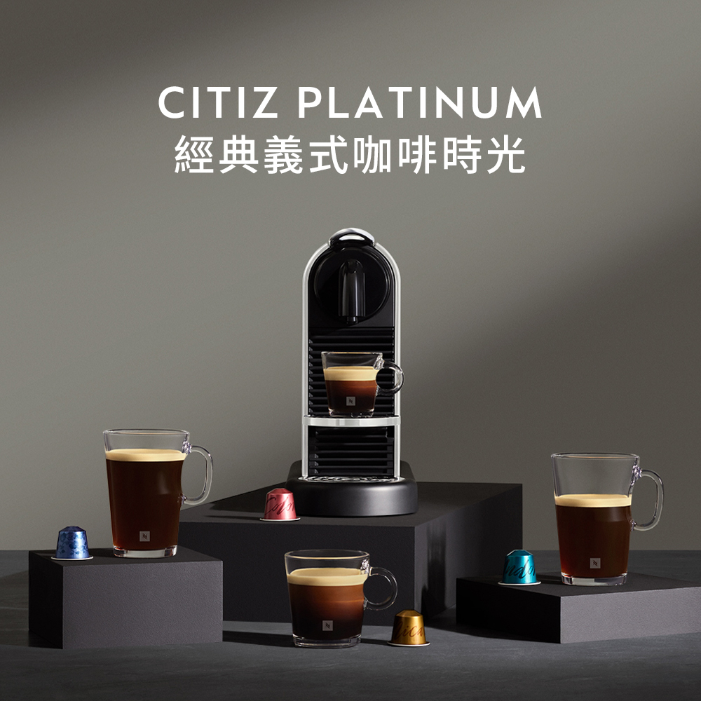 【Nespresso】膠囊咖啡機 CitiZ Platinum(不鏽鋼金屬色) & 訂製時光咖啡50顆膠囊組(贈咖啡組)晨間大杯50顆*|午後香醇50顆*|星夜迷人50顆*Coffee Machines & AccessoriesNespresso官方旗艦店