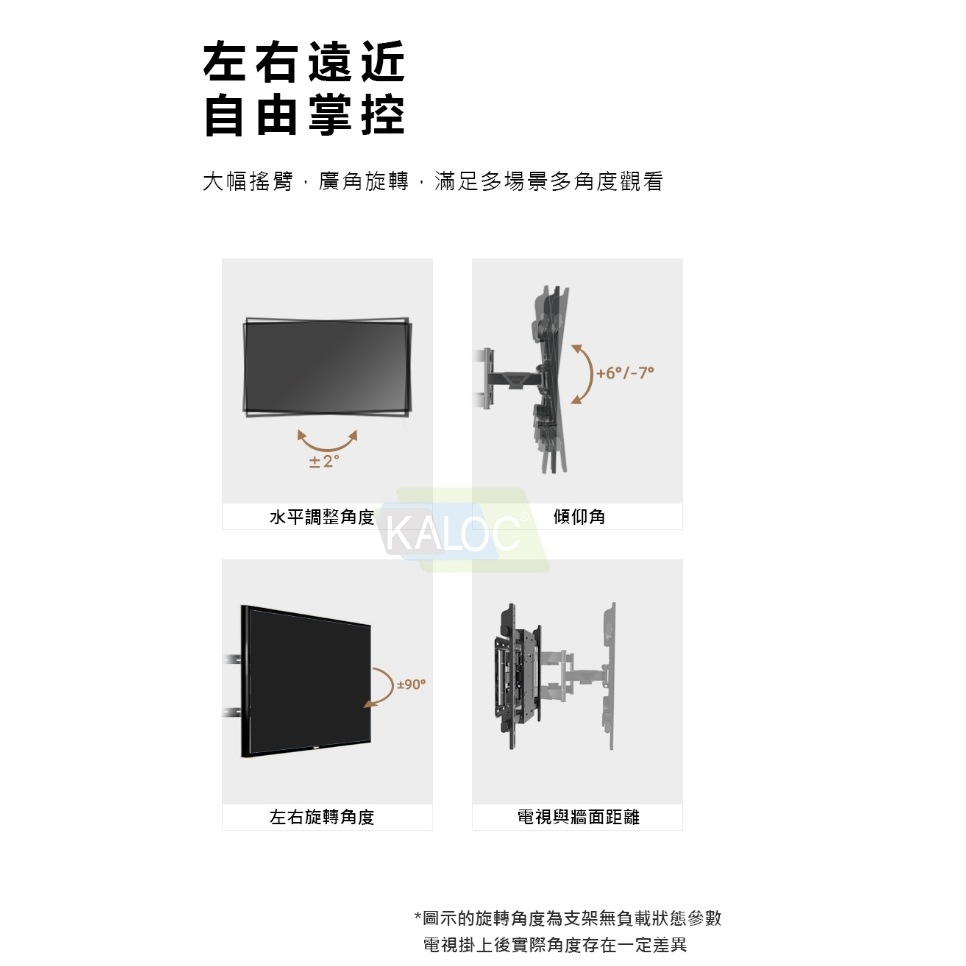 KALOC 55-90吋液晶螢幕萬用旋臂架 懸臂架 電視架 電視支架 雙手臂 大承重 耐用壁掛架 S9 katai 現貨KALOC 55-90吋液晶螢幕萬用旋臂架 懸臂架 電視架 電視支架 雙手臂 大承重 耐用壁掛架 S9 katai 現貨TV BracketsNB KALOC RENPHO Smate 品牌旗艦店【katai生活家電館】