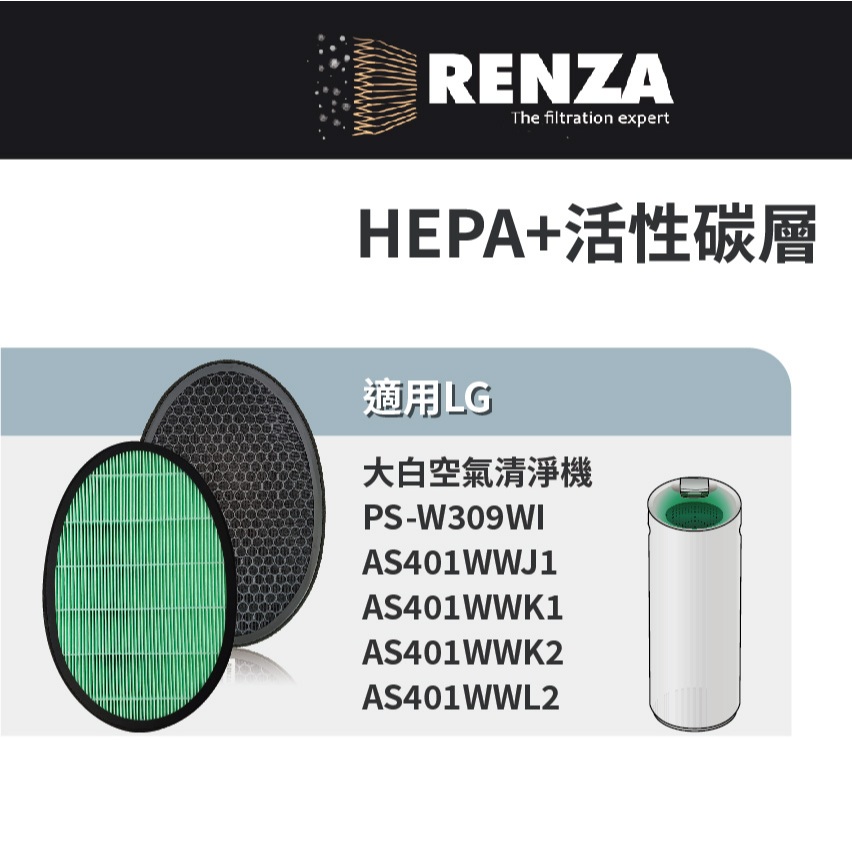 適用LG樂金 直立式大白 PS-W309WI AS401WWJ1 AS401WWL2 抗菌HEPA+除臭活性碳 濾網福利品 1片抗菌HEPA+1片蜂巢活性碳|1片抗菌HEPA濾網+1片蜂巢活性碳濾網|1片抗菌HEPA濾網|1片蜂巢活性碳濾網Air TreatmentRenza Filtration 濾網專家