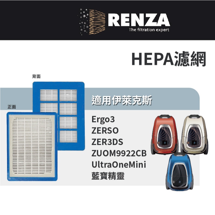 適用Electrolux伊萊克斯 Ergo3 ZERSO ZER3DS ZUOM9922CB 藍寶精靈 吸塵器 集塵濾網適用Electrolux伊萊克斯 Ergo3 ZERSO ZER3DS ZUOM9922CB 藍寶精靈 吸塵器 集塵濾網Air TreatmentRenza Filtration 濾網專家
