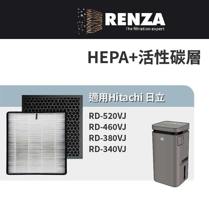適用Hitachi 日立RD-520VJ RD-460VJ RD-380VJ RD-340VJ清淨除濕機 HEPA活性碳HEPA高效濾網 x 1片|蜂巢式椰殼活性碳濾網 x 1片Air TreatmentRenza Filtration 濾網專家