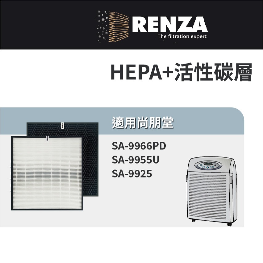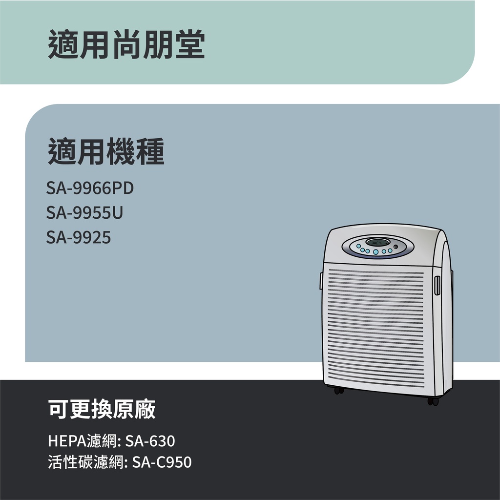 適用尚朋堂 SA-9966PD SA-9955U SA-9925 替換SA-630 SA-C950 HEPA+活性碳濾網1片抗敏HEPA|1片蜂巢活性碳(除臭除甲醛)|1片HEPA+1片活性碳Air TreatmentRenza Filtration 濾網專家