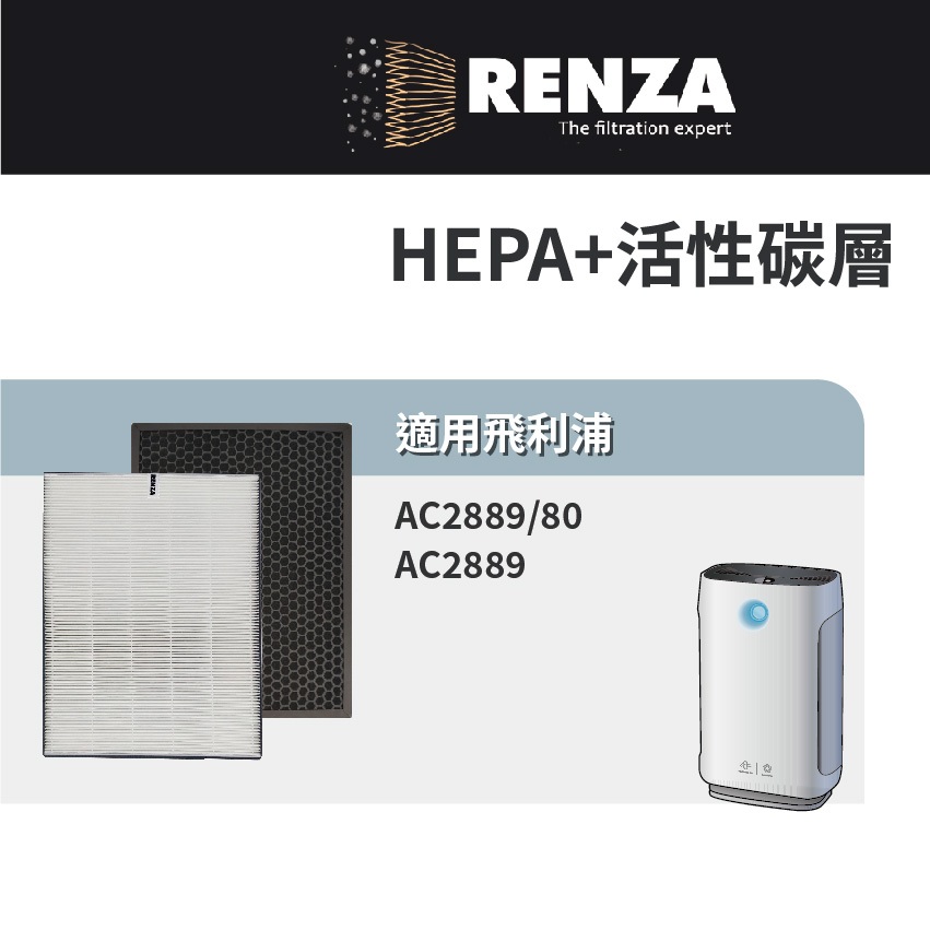 適用PHILIPS 飛利浦 AC2889/80 AC2889 智能抗敏空氣清機 HEPA+活性碳濾網 濾芯 FY2422福利品 1片抗敏HEPA+1片蜂巢活性碳|1片抗敏HEPA濾網+1片蜂巢活性碳濾網|1片蜂巢活性碳濾網(除臭除甲醛)|1片抗敏HEPA濾網Air TreatmentRenza Filtration 濾網專家