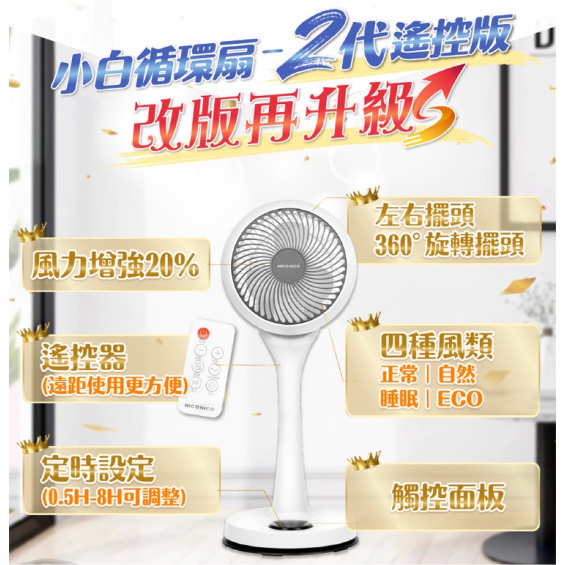 NICONICO 二代遙控版-小白循環扇 360度循環陀螺立扇 循環扇 電風扇 對流扇 靜音 省電 NI-GS1120二代遙控版-冰雪白【一台】|二代遙控版-冰雪白【兩台】|二代遙控版-冰雪白【四台】CoolingNICONICO家電-官方賣場