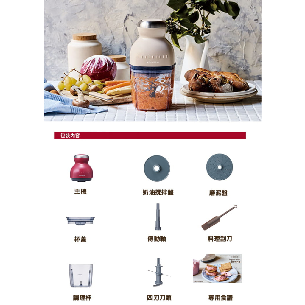 recolte 日本麗克特Bonne 萬用調理機 RCP-3W香檳白/現貨免運recolte 日本麗克特Bonne 萬用調理機 RCP-3W香檳白/現貨免運Food Processors & Meat GrindersNihonFix日電通時尚精品家電生活館《佳醫官方直營店》