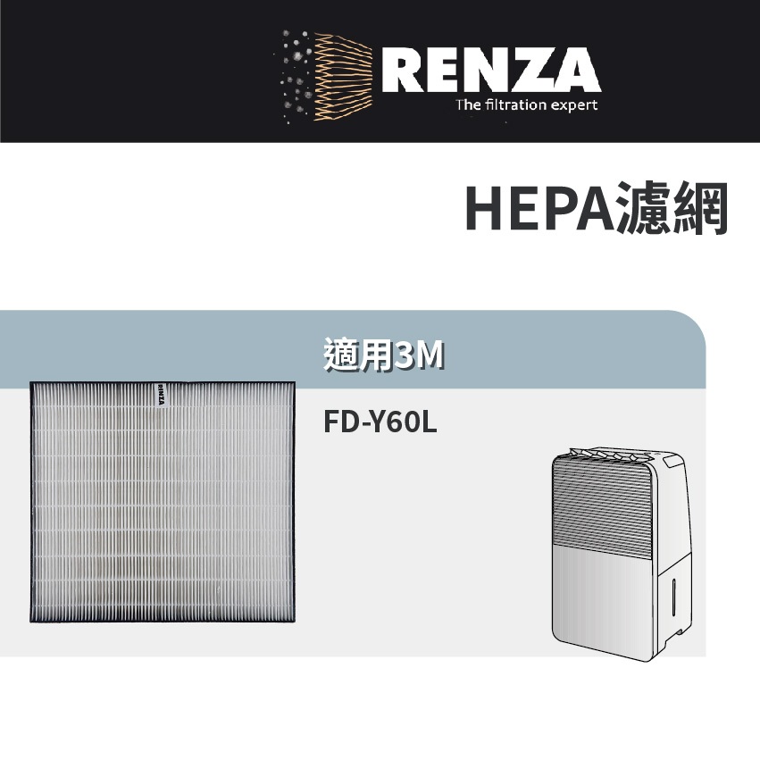 適用3M FD-Y60L 6公升雙效空氣清淨除溼機 替代 Y-60F HEPA濾網 濾芯適用3M FD-Y60L 6公升雙效空氣清淨除溼機 替代 Y-60F HEPA濾網 濾芯Air TreatmentRenza Filtration 濾網專家