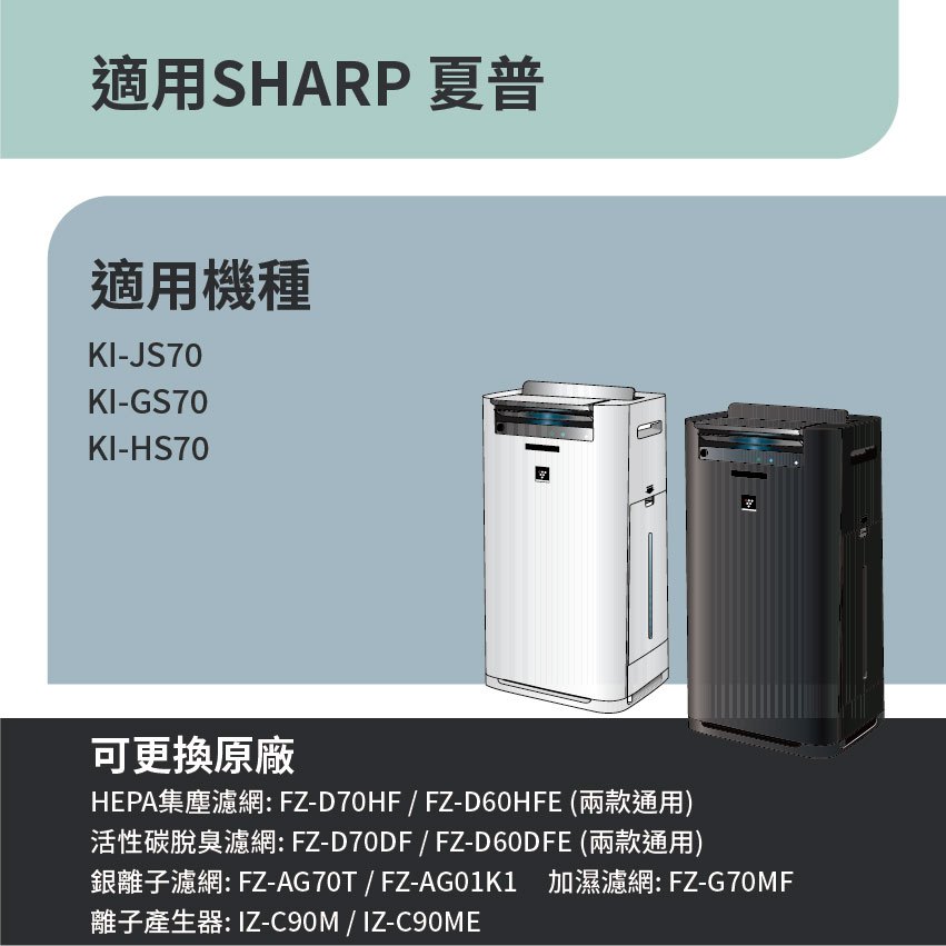 適用 Sharp 夏普 KI-JS70 KI-GS70 KI-HS70 HEPA+活性碳+加濕濾網+銀離子+離子產生器